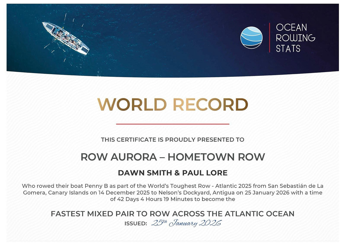 👉 Paul and I are the fastest mixed pair to row the Atlantic Ocean East–West.